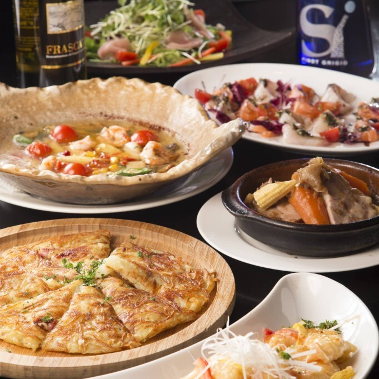 熱々のアヒージョなど、バラエティー豊かな自慢の一皿